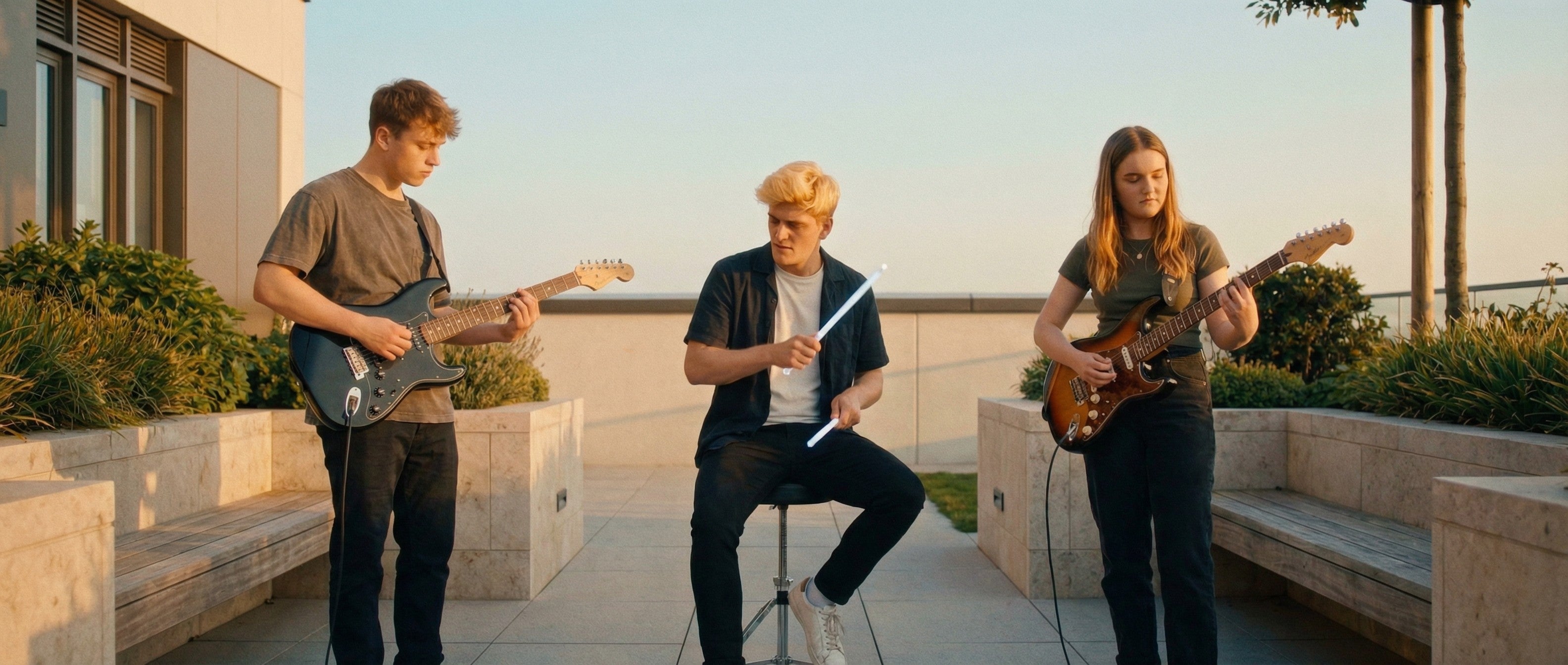 No physical drum set is required. Gamsing detects your movements in real time and turns them into authentic drum sounds through its app or Bluetooth speaker.