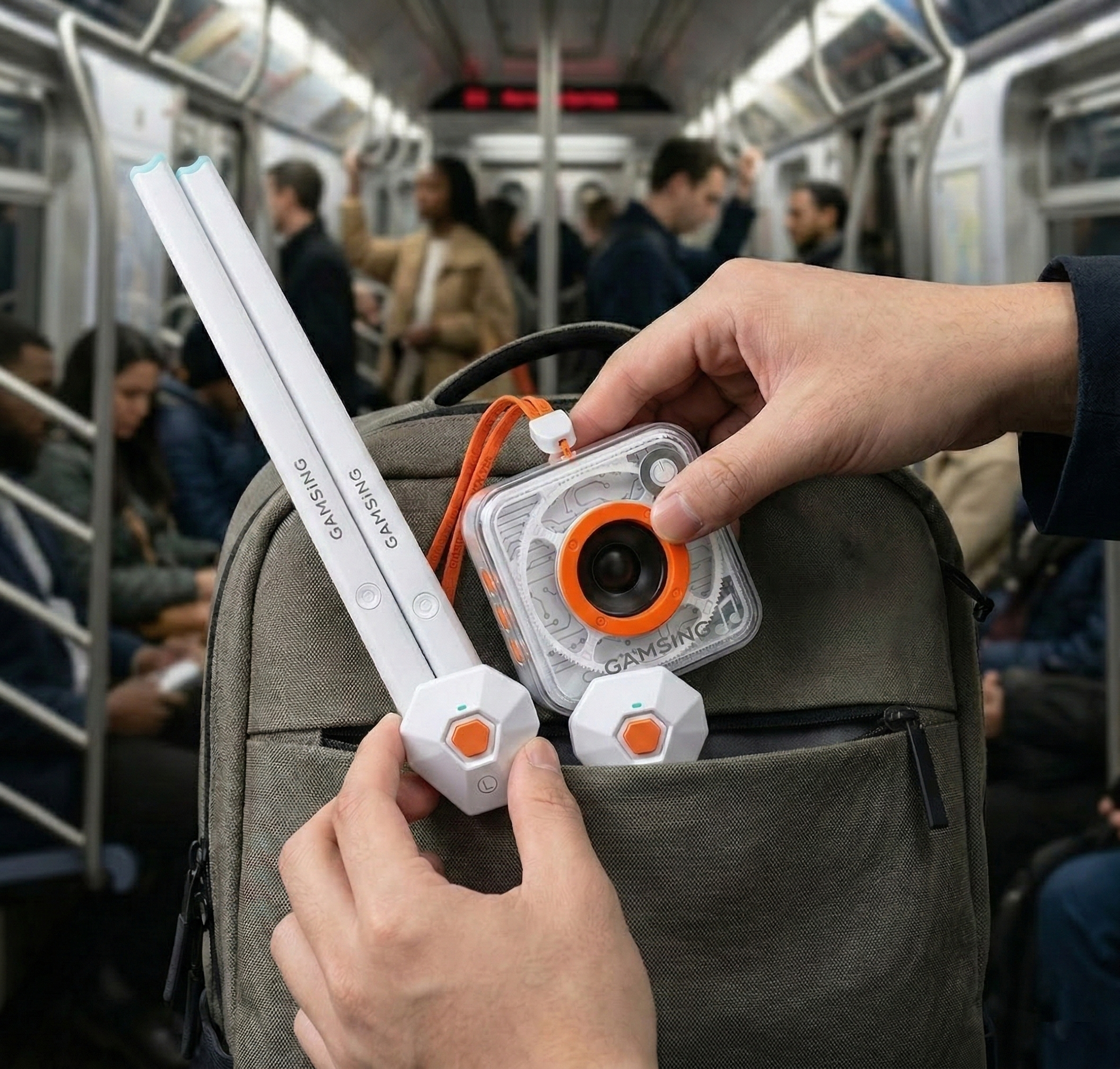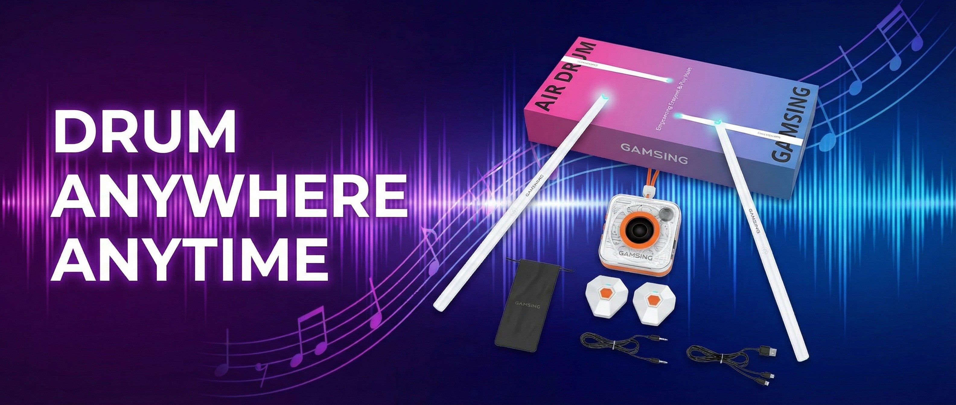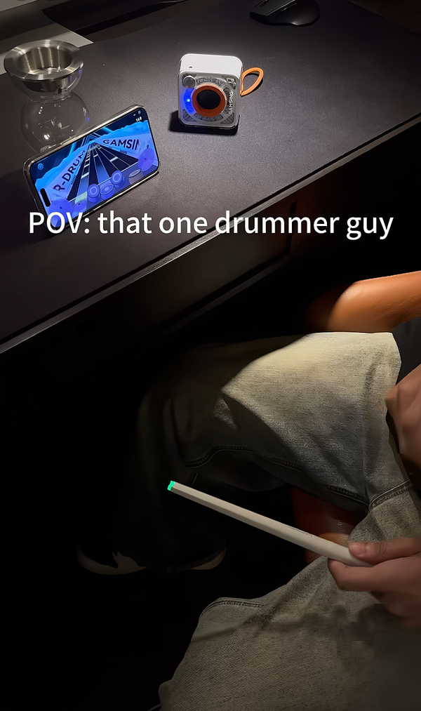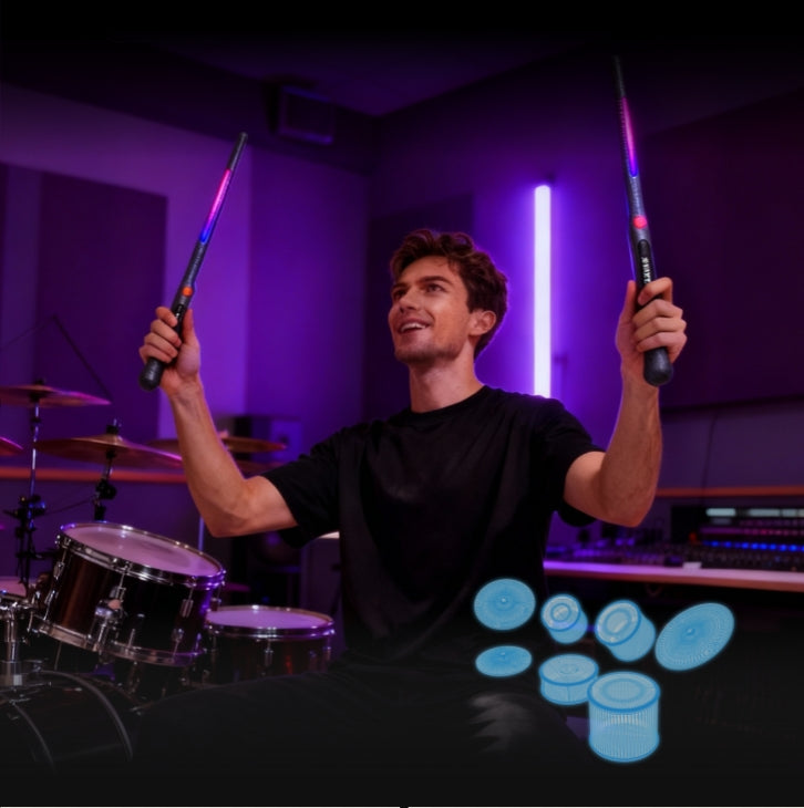 Gamsing is a smart air-drumming system that combines motion-sensing drumsticks, foot pedals, and an interactive app — letting you play, learn, and enjoy music anytime, anywhere.